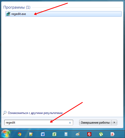 Поиск regedit через меню ПУСК